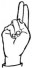 На ћирилици написано МИЊА КРГА састоји се из 8 слова [?]. Исписано ћириличном једноручном азбуком за глувонеме: